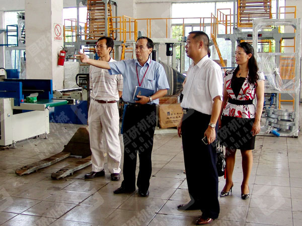 公司党支部书记王声跃陪同司法局罗育辉局长、曾晓云副局长参观生产车间
